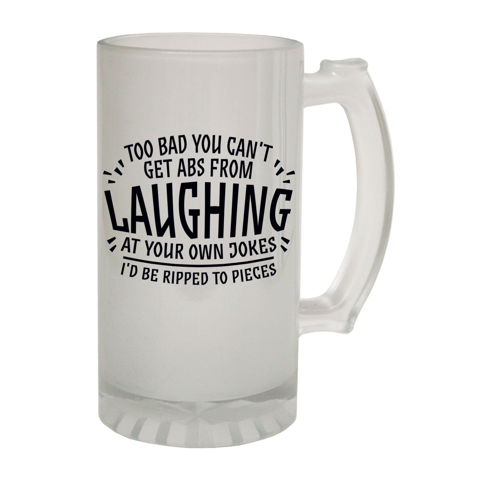 Abs Laughing Own Jokes - Novelty Funny Frosted Stein - Gift Boxed