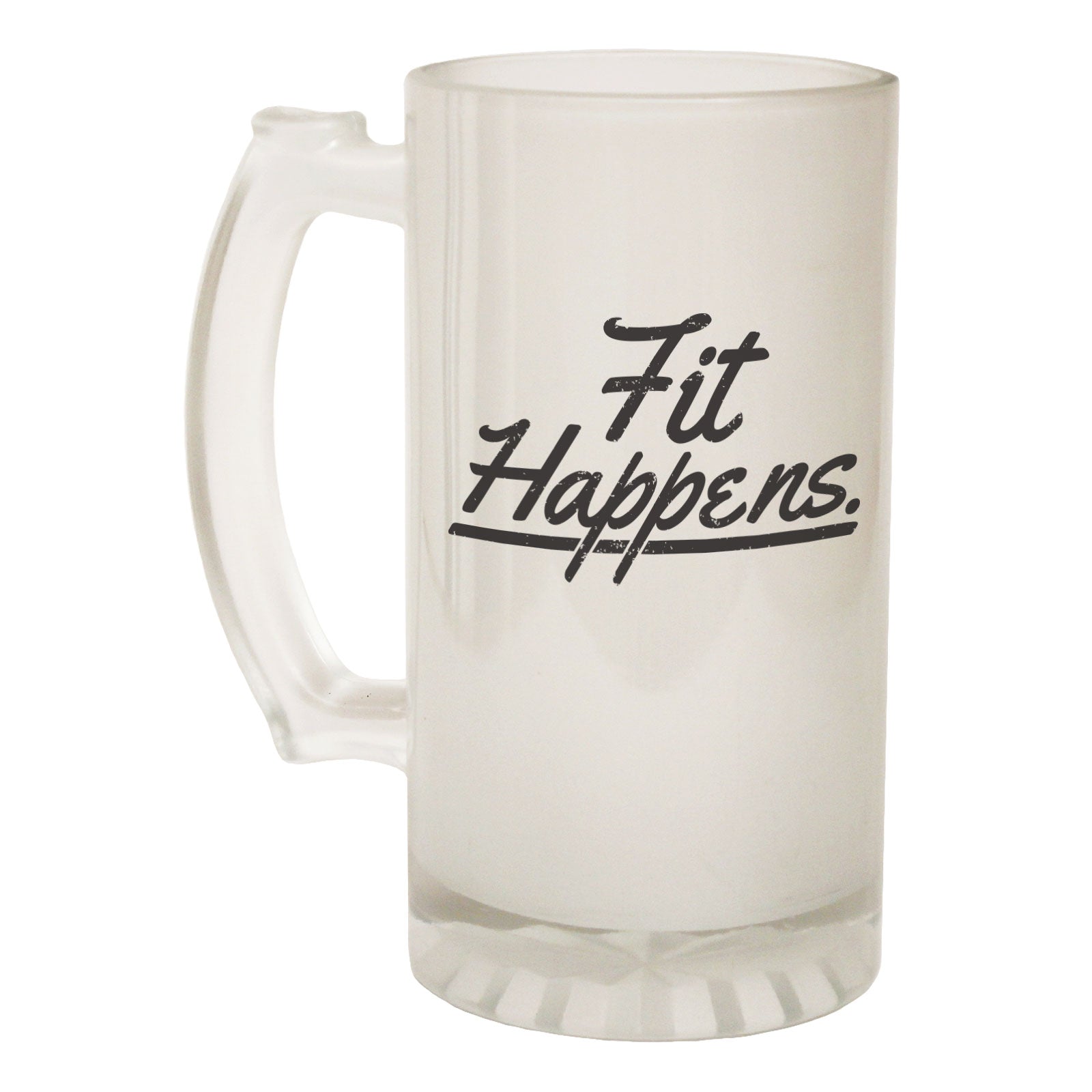 FIT Happens Workout - Novelty Funny Frosted Stein - Gift Boxed
