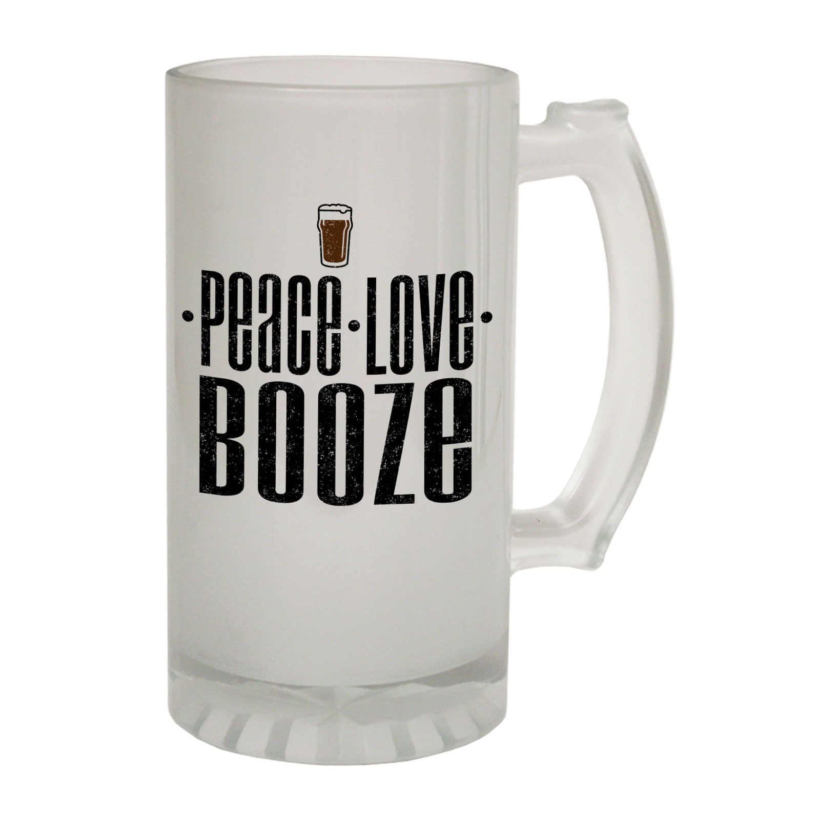Peace Love Booze Lager - Novelty Funny Frosted Stein - Gift Boxed