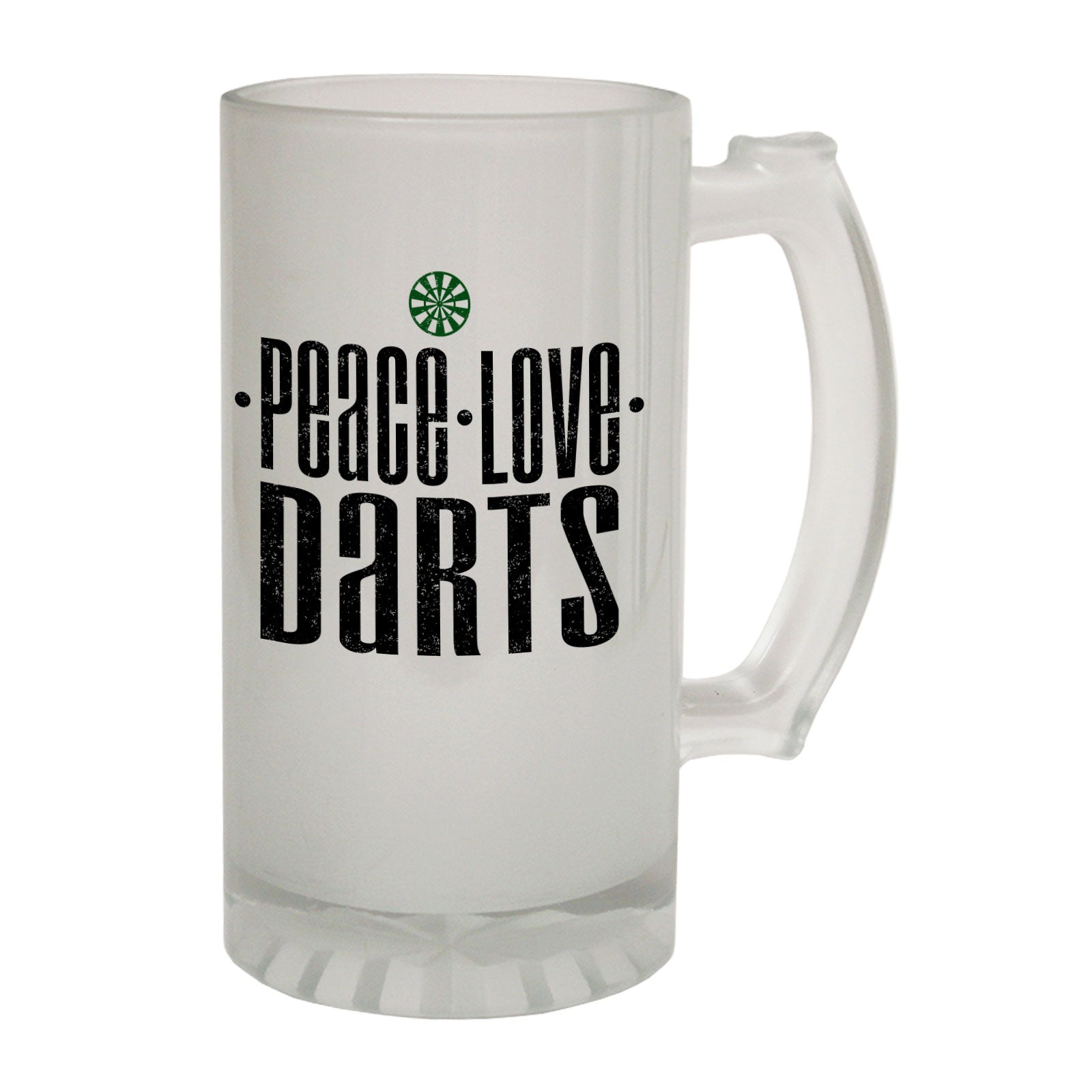 Peace Love Darts Beer - Novelty Funny Frosted Stein - Gift Boxed