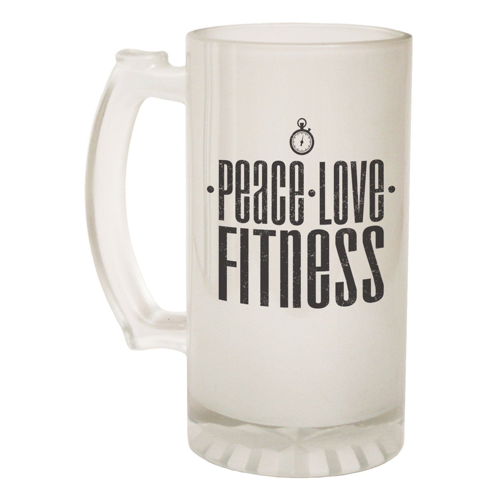 Peace Love Fitness - Novelty Funny Frosted Stein - Gift Boxed