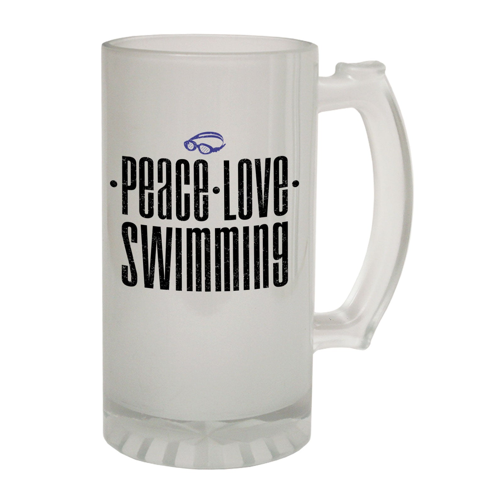 Peace Love Swimming Swimmer - Novelty Funny Frosted Stein - Gift Boxed
