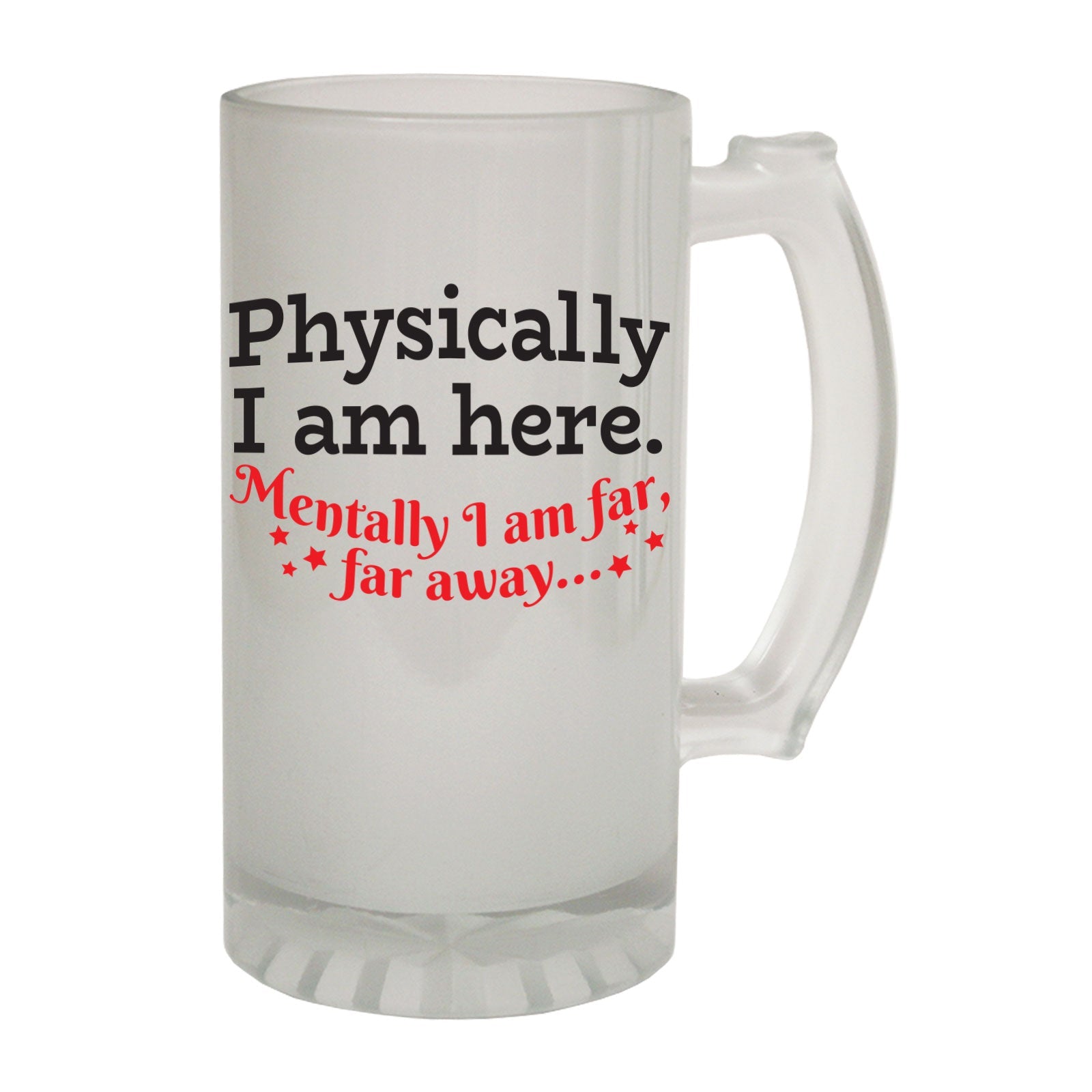 Physically Here Mentally - Novelty Funny Frosted Stein - Gift Boxed