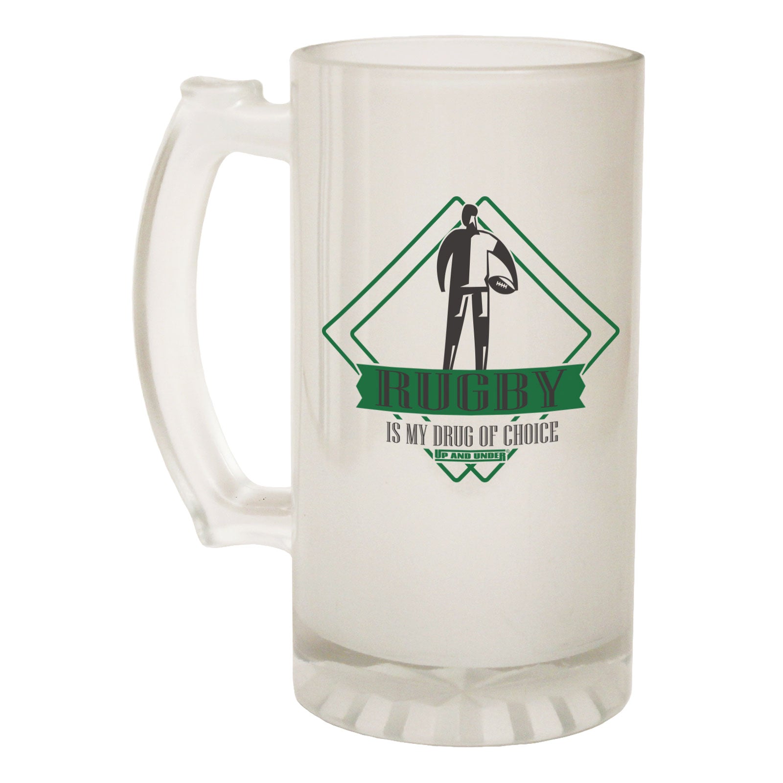 Rugby Drug Of Choice - Novelty Funny Frosted Stein - Gift Boxed