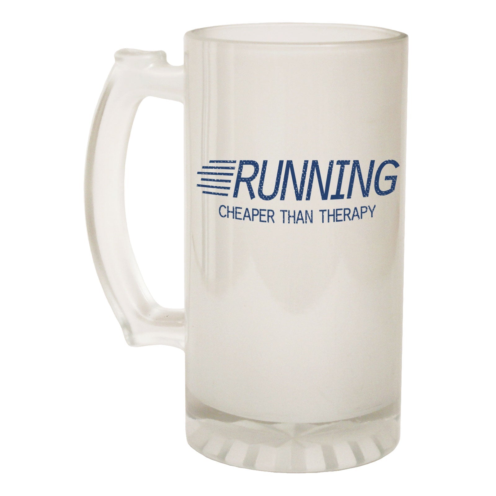 Running Cheaper Than Therapy - Novelty Funny Frosted Stein - Gift Boxed