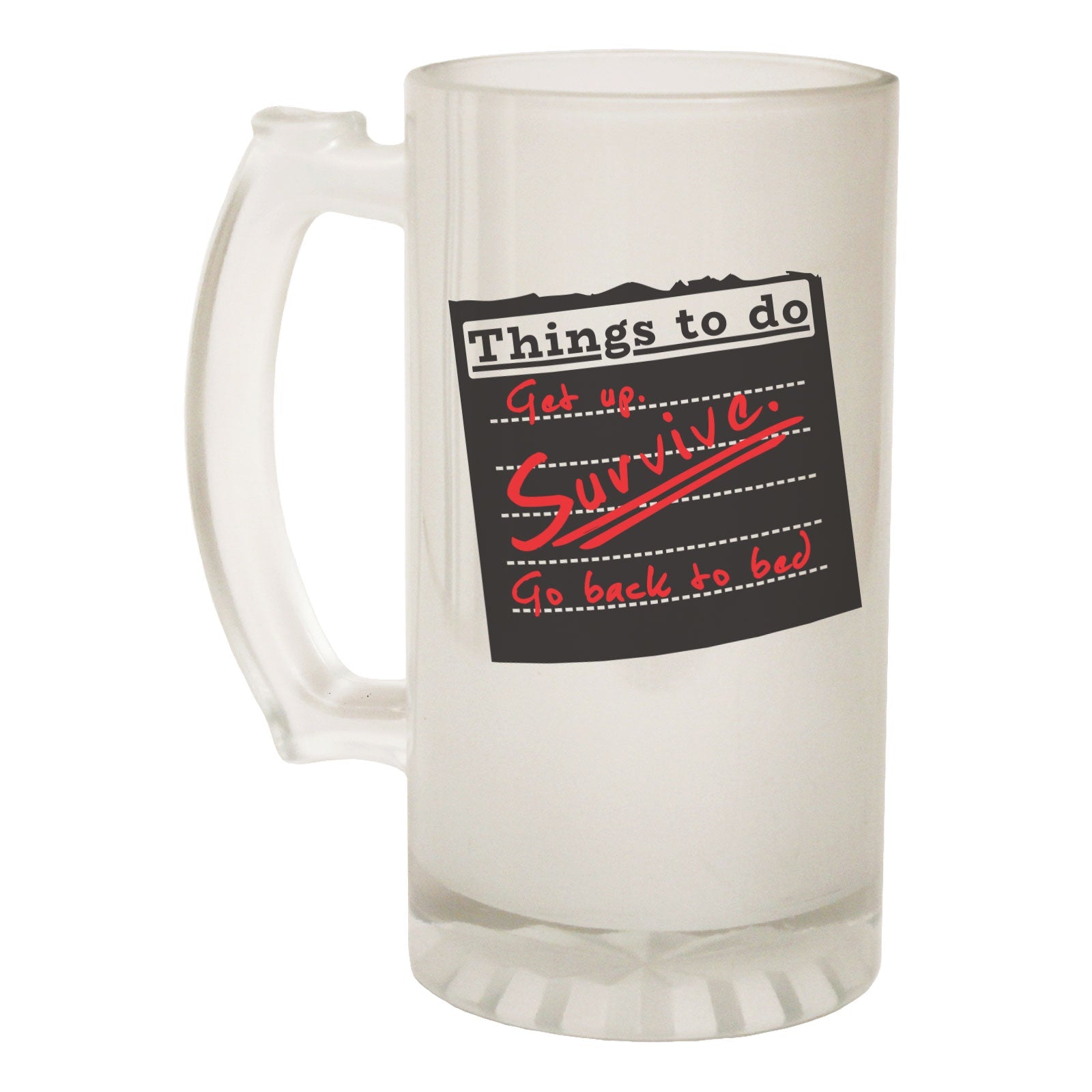 Things To Do Survive Joke - Novelty Funny Frosted Stein - Gift Boxed